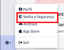 NOTA: Se o primeiro acesso for feito através do aplicativo, a troca de senha não será solicitada inicialmente. O usuário deverá realizar essa alteração através do menu da roldana, conforme indicado na imagem abaixo: